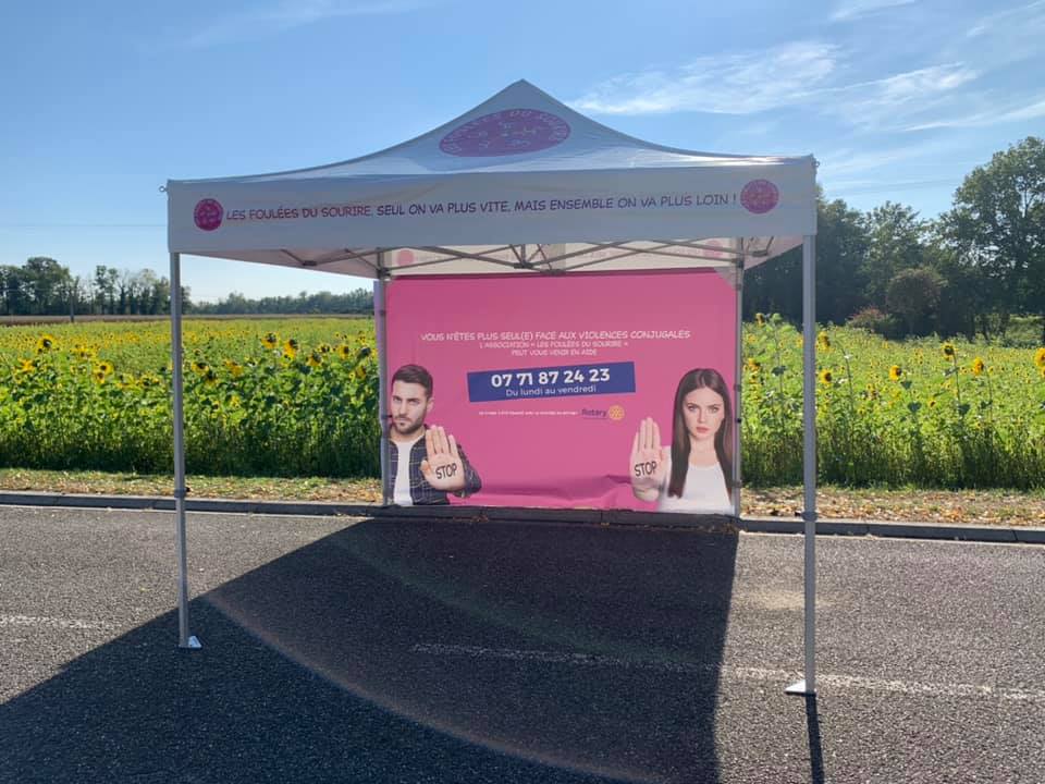 En ce début d’année 2021, le Rotary Club Sélestat Centre Alsace avait fait le choix des Foulées du sourire pour la remise des bénéfices de l’action “Une femme, une rose”. L’argent récolté a permis en grande partie le financement de deux tonnelles, aux couleurs de l’association.