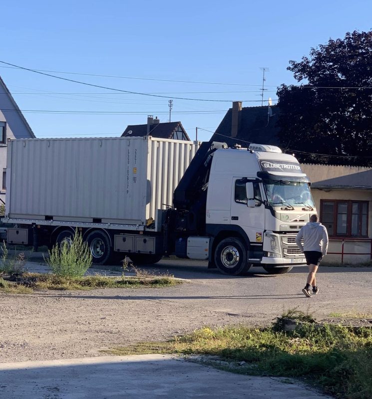 Le container 20 pieds financé grâce au Marathon de Colmar a été livré ce jeudi 22 septembre ! Un container 1er voyage en excellent état avec ajout de lampes Led pour l’éclairage.