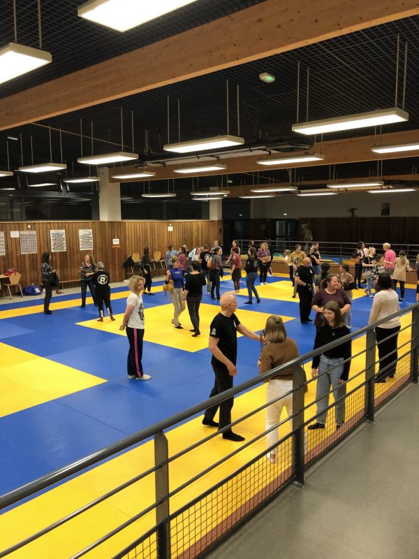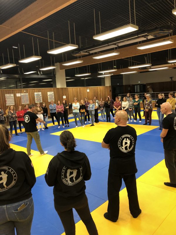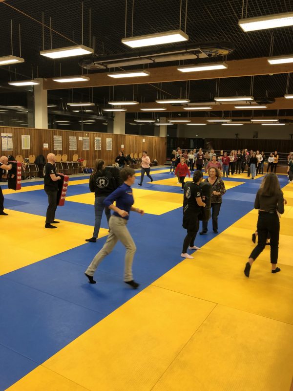 Mardi 2 novembre 2021, nous avons proposé pour sa seconde édition un stage de Self défense dédié aux femmes. La thématique choisie était pour cette fois : protection avec des objets du quotidien. Ce sont près de cinquante participantes qui se sont inscrites. Chacune a pu s’entrainer à se défendre, grâce à différents objets comme des magazines et des sacs à main. Nous avons constaté beaucoup de sourires à la sortie de la salle et nous espérons que ce stage a pu être utile.