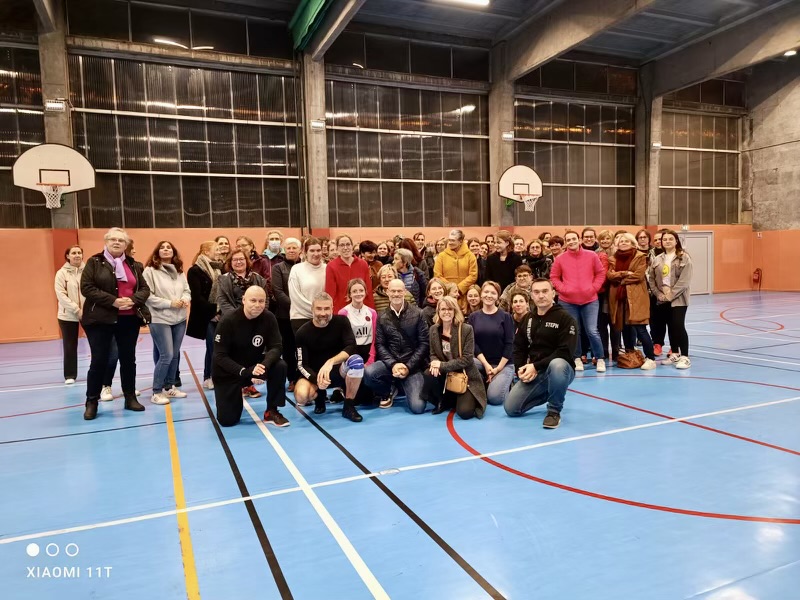 Stéphane et son équipe de la section Savate bâton défense de Wintzenheim sont intervenus une nouvelle fois auprès de 70 femmes adultes et adolescentes pendant près d’1h30.